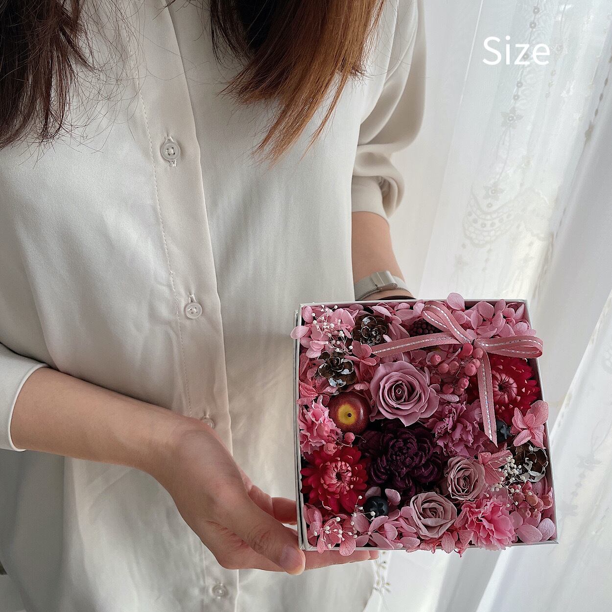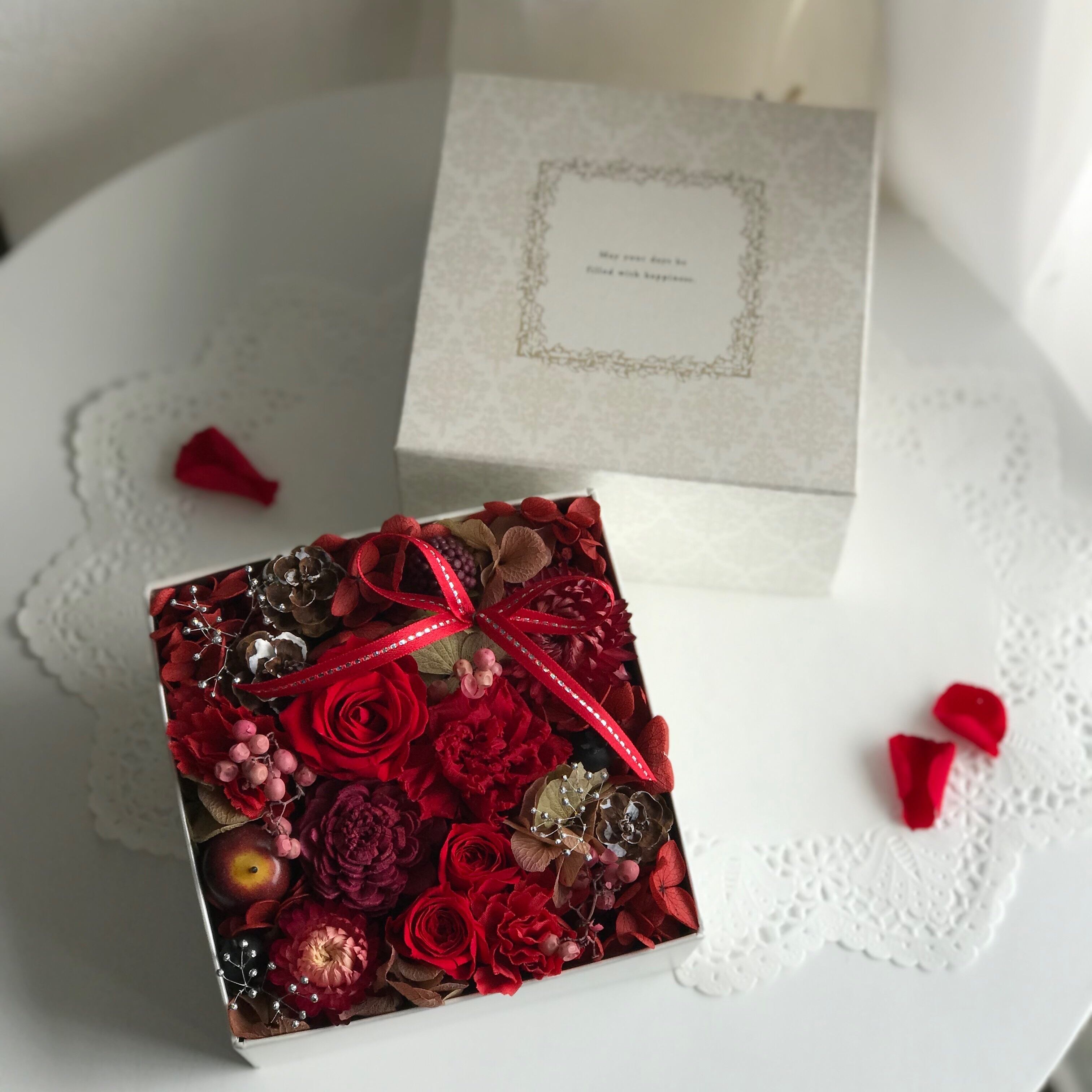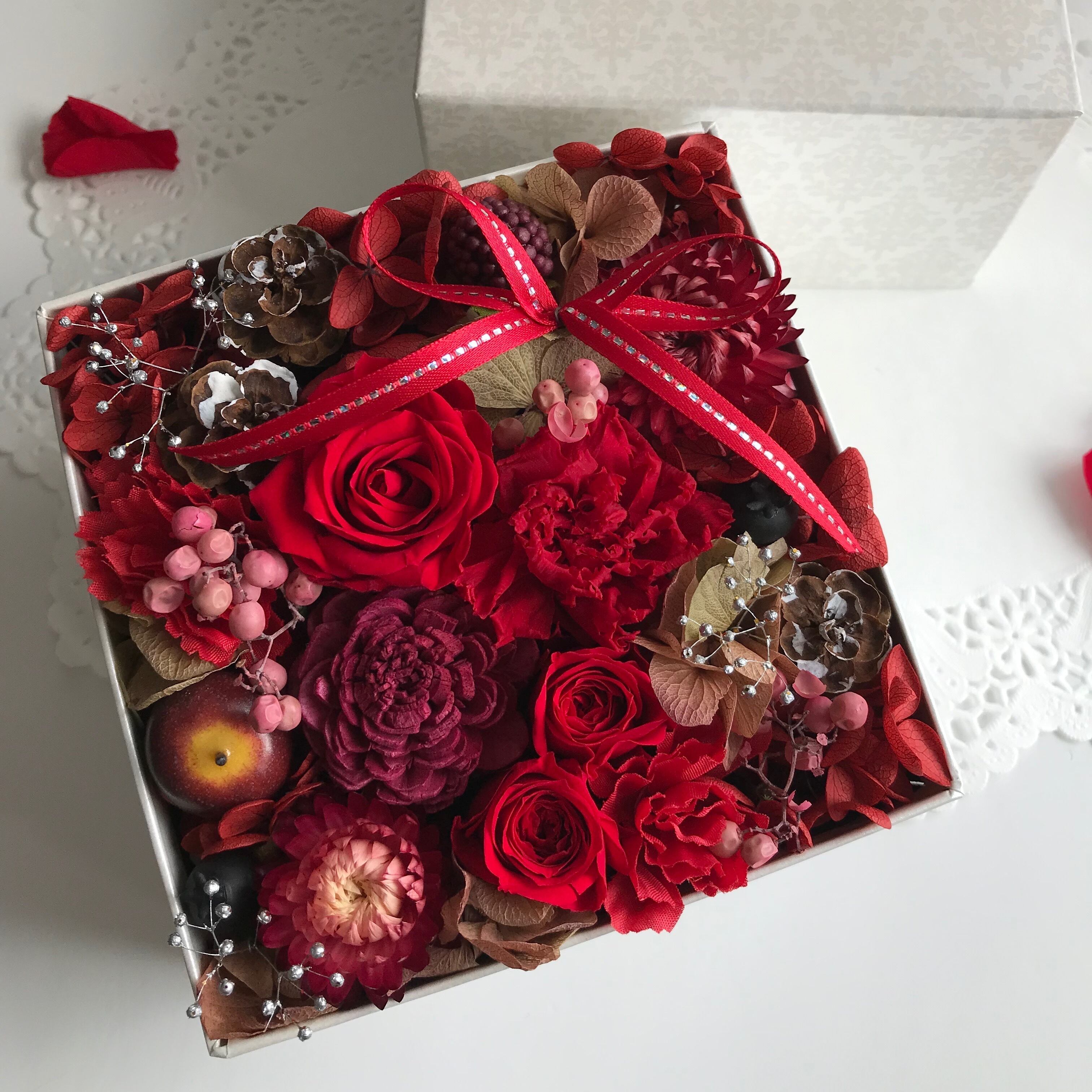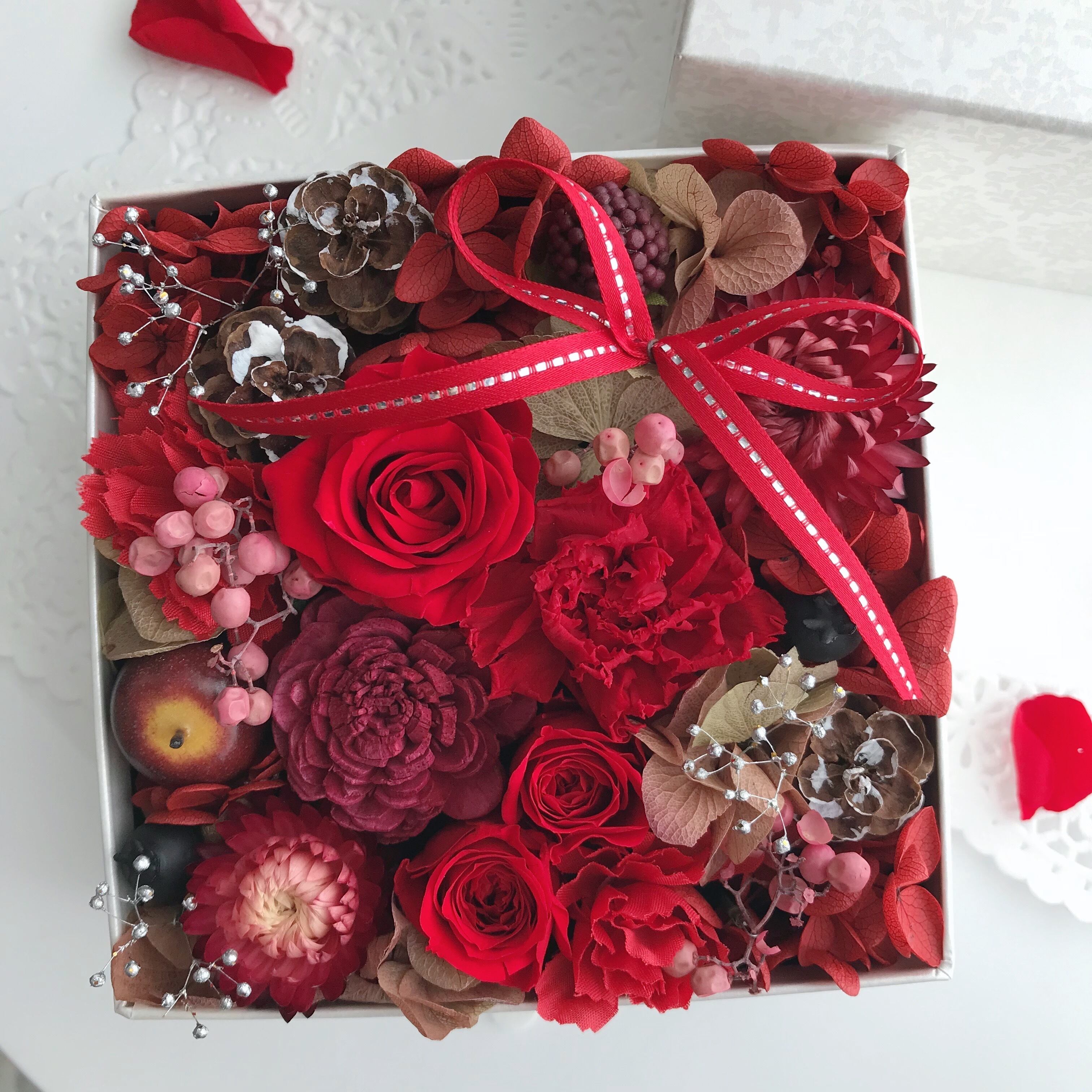 BOXにプリザーブドフラワーを敷き詰めました*・:*